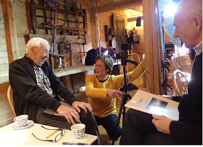 (Frå intervjuopptak i november 2018, Marianne Nystad instruerar frivillige Torolv Løset og Gunnar Åsen)