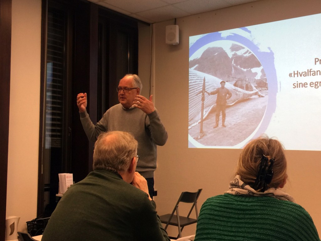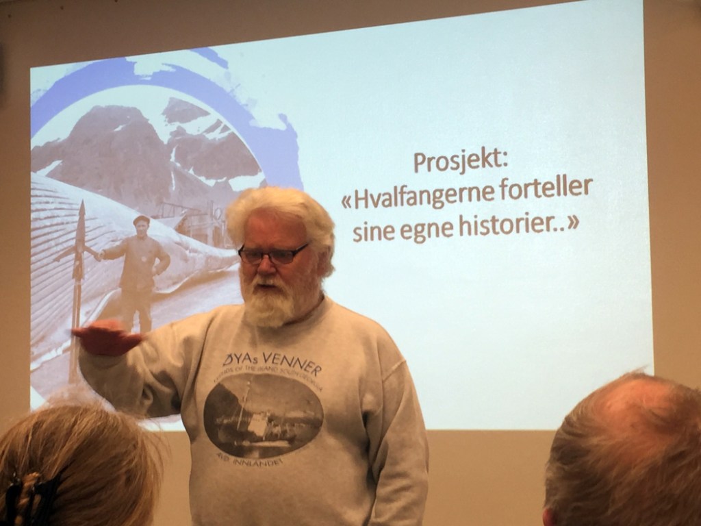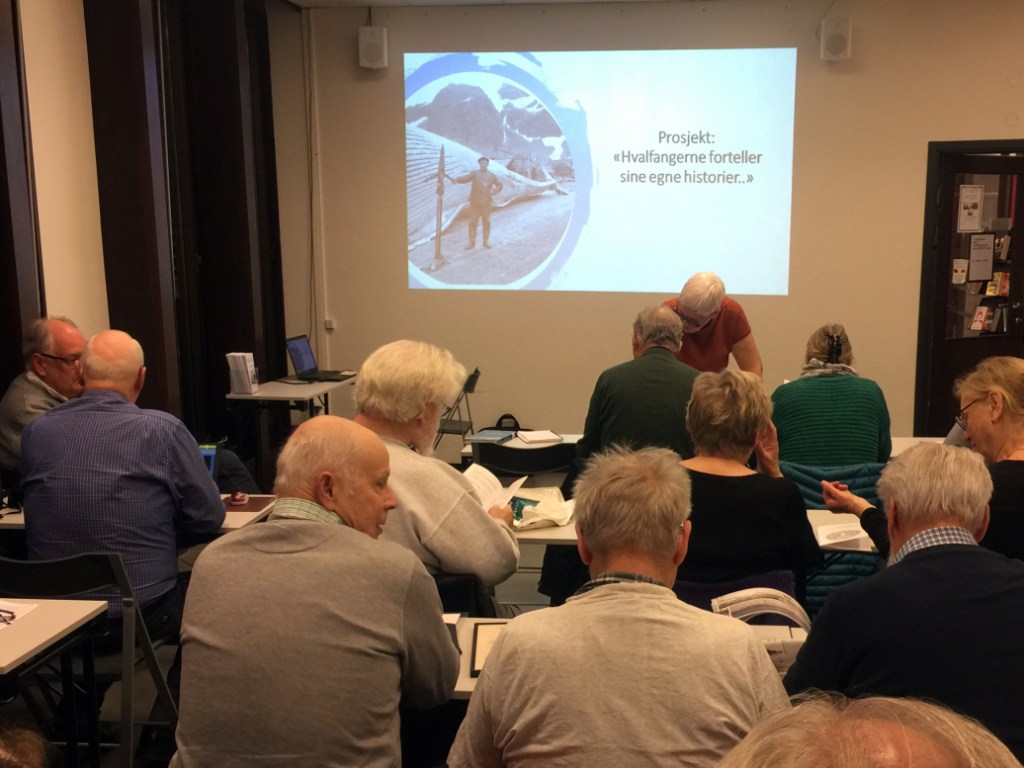 Lesesalen på biblioteket var fylt til siste stol av interesserte og flere hvalfangere var møtt opp. En fin «bivirkning» var at et par sjøfolk også møtte opp. Vi fant ut at de kunne intervjues inn i Sjøfartsprosjektet til memoar. Kvelden ble avsluttet med fortellinger om dagliglivet av Per fra foreningen «Øyas Venner» som er aktive i intervjuprosjektet. Og til slutt var det oppstilling for fotografering og intervju med journalist Hesjadalen fra Gjøviks Blad. Vi håper på en stor reportasje.